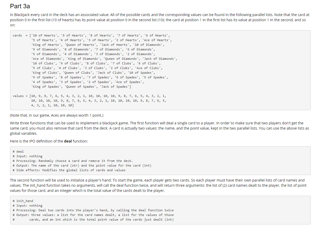 Solved Part 3a In Blackjack Every Card In The Deck Has An Chegg Com